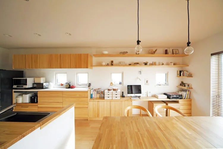 カウンターがあれば、たとえば家族宛ての郵便物を置いておいたり、子どもと宿題をしたりするスペースとして大活躍。