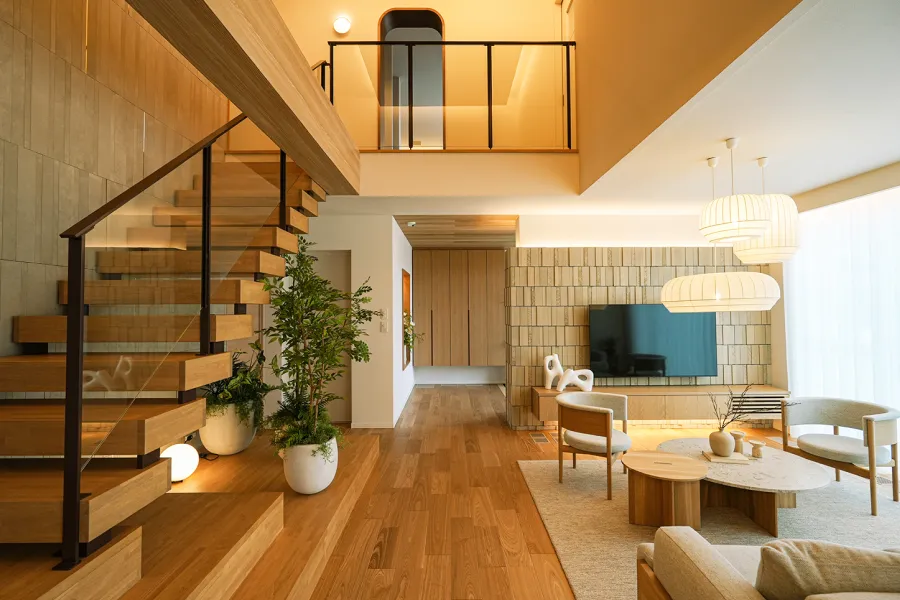 床下の大空間に設置した空調システム:快適エアリーが、夏は自然なさわやかさを、冬は心がほどけるようなぬくもりをもたらします。