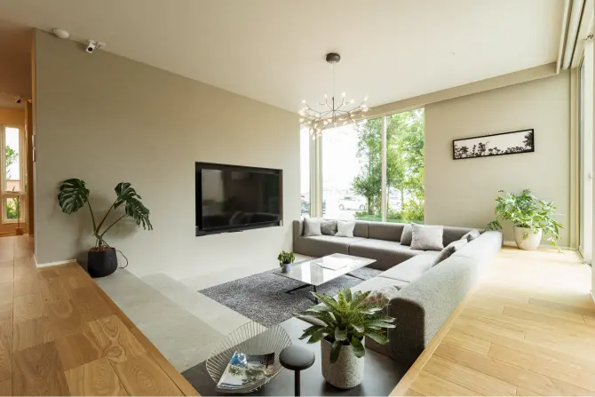 南面に約4m以上もある大きな窓を設けた、開放感抜群のリビングが家族を優しく包み込みます。