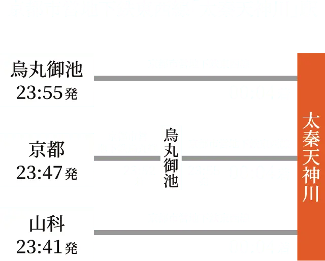 ※2:通勤時・日中時/8分。京都市営地下鉄東西線「太秦天神川」駅から「烏丸御池」駅。