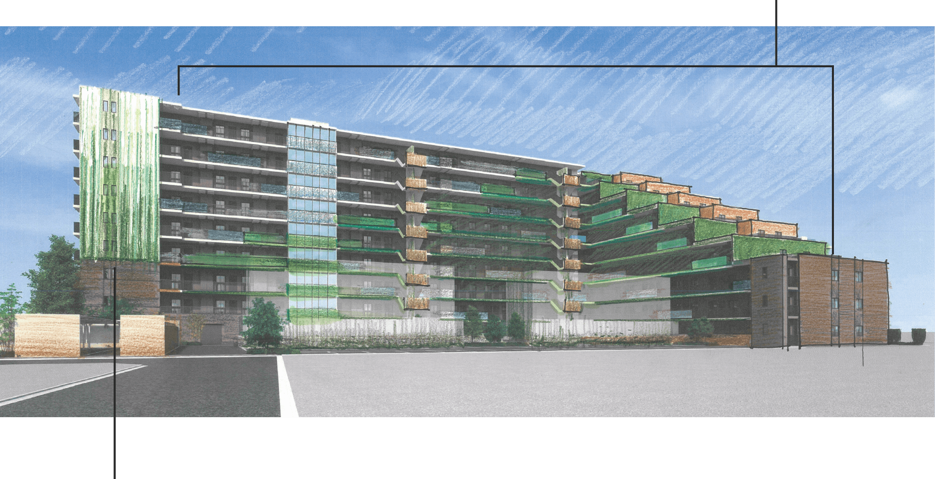 ※掲載の概念図は計画段階の図面をもとに描き起こしたもので実際とは異なります。尚、植栽は実際に植樹する樹形、枝ぶり、葉や花の色合いとは異なる場合があり、特定の季節の状況を示すものではありません。また、竣工時には概念図程度には成長しておりません。予めご了承ください。施工上やむをえない変更が生じた場合は建物竣工時の状態を優先します。