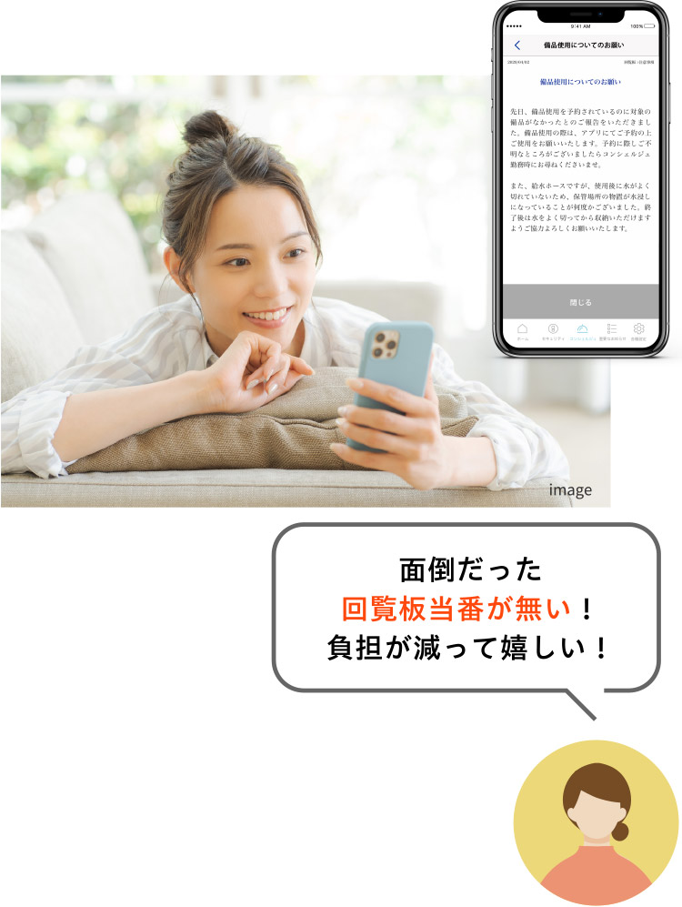 回覧板の電子化や管理組合の運営補助をはじめとした「分譲管理機能」、