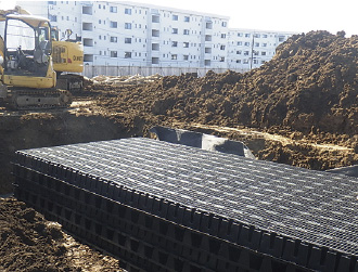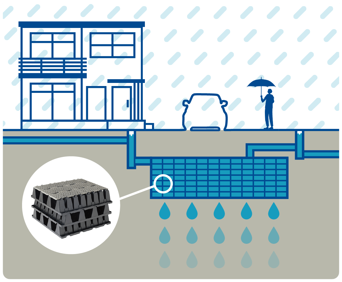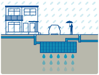 コンクリートで覆われ、雨水の行き場を失うこと。