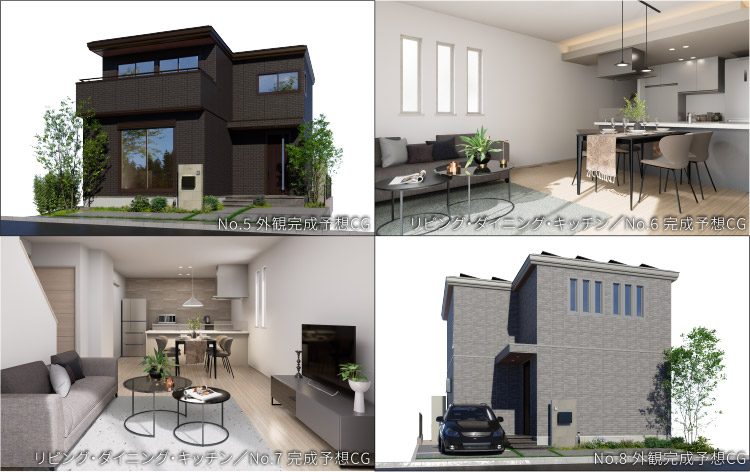 ※掲載の全体区画図は、計画段階の図面を基に描き起こしたもので実際とは異なります。また、施工上やむをえない変更が生じた場合は建物竣工時の状態を優先します。※電柱の位置については今後変更となる場合がございます。図面と現況が相違する場合、現況優先とさせていただきます。※全体区画図の方位は若干の差異を生じる場合があります。