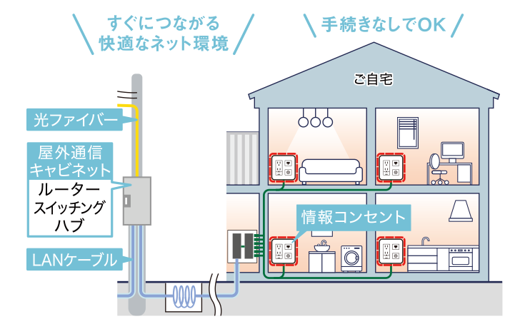 屋外通信キャビネットを設置し、ご自宅とLANケーブルでつなぐことで