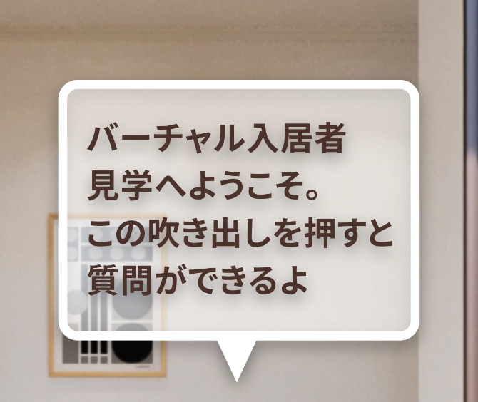 各部屋を見学しながら、バーチャル入居者に新しい暮らしの住み心地を聞いてみてください。
